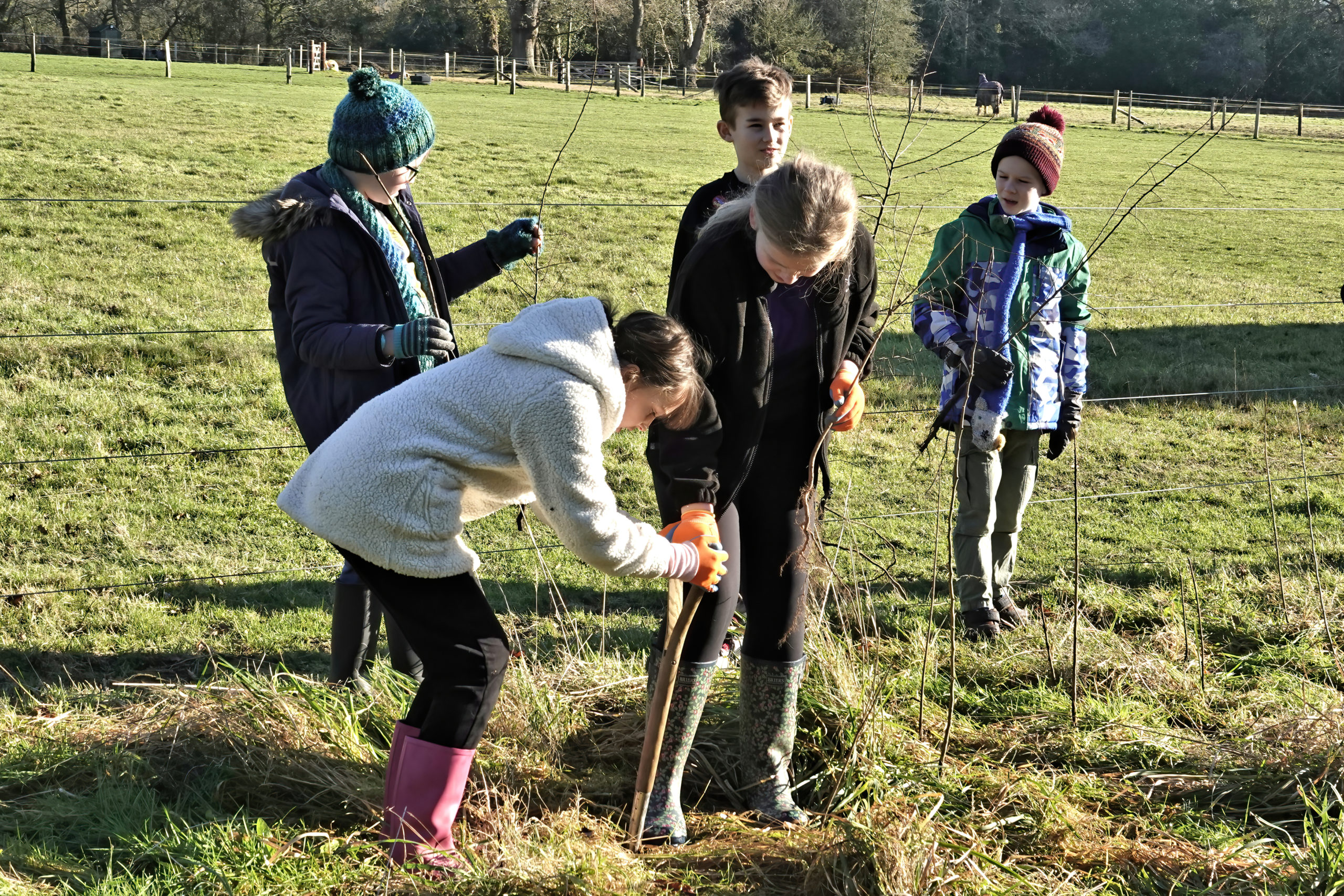 Bransgore Primary School Hedgerow Heroes on the fun parts of hedge planting!